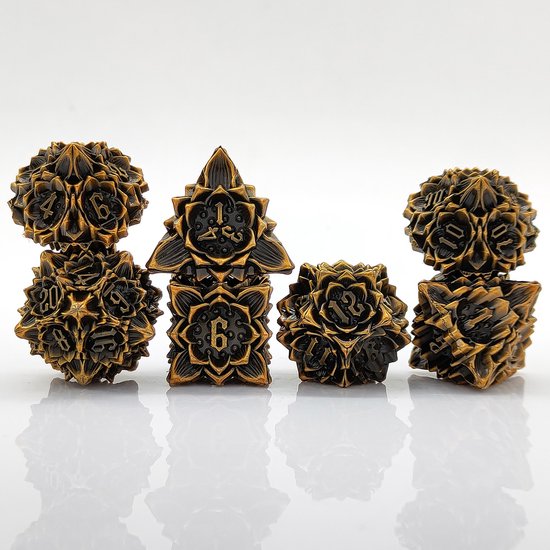 Ensemble de dés Joya Kids® Dungeons and Dragons | Set de Dés DnD Polydice | Ensemble de dés D&D | Ensemble de 7 dés en Métal | Coffre de rangement de Luxe inclus | Dés en métal Fleurs en relief | Fleur | Lotus