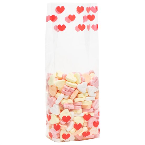 Prigta - Sacs en papier - 50 pièces - 10x16 cm - blanc avec coeurs rouges - 40 gr/ m2 / sacs cadeaux