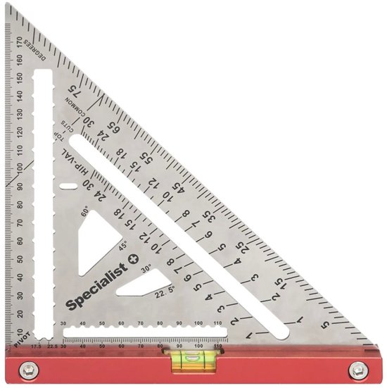 Un carré est un outil avec lequel vous pouvez mesurer des angles et les marquer perpendiculairement, vous pouvez également vérifier si un angle est vraiment carré. Il n'est pas possible de mesurer des longueurs avec. En plus d'une équerre, vous pouvez également utiliser un crochet à biseau ou à onglet. Un crochet pivotant se compose de deux règles qui sont attachées l'une à l'autre en un point et peuvent donc être déplacées selon des angles différents. Le crochet à onglet est utilisé pour marquer des angles de 45 et 135 degrés.
