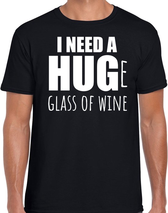 Besoin d'un grand verre de vin / Besoin d'un Groot verre de vin t-shirt amusant - noir - homme - outfit de Fête / vêtement / chemise S