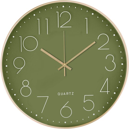 Horloge murale Tyme - 30 cm Klok moderne - analogique - horloge silencieuse - vert or
