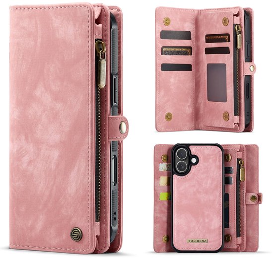Étui Solidenz iPhone 17 Étui Portefeuille - Urban Wallet - Étui téléphone avec porte-cartes - Poche zippée - Magnétique - Dragonne - Rose