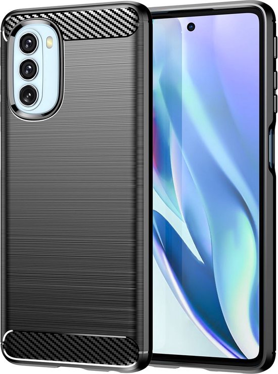 Coque Motorola Moto G51, coque en gel TPU MobyDefend , métal brossé + aspect carbone, Zwart | Étui pour téléphone portable/étui pour téléphone adapté à : Motorola Moto G51