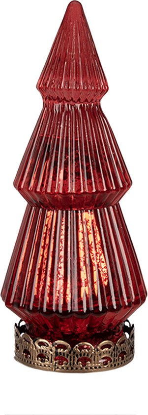 Clayre & Eef Décoration de Noël avec éclairage LED Sapin de Noël Ø 7x16 cm Rouge Verre