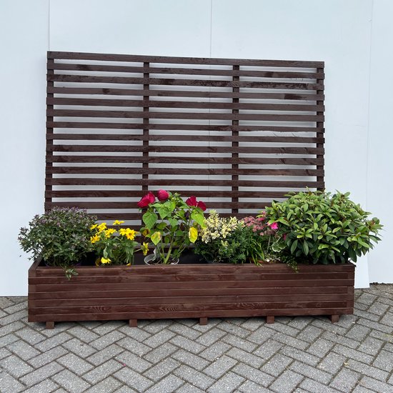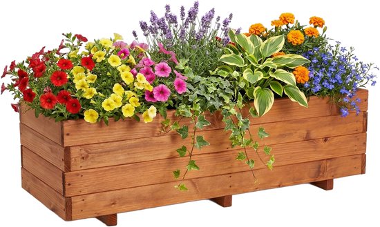 Décorations de jardin | Jardinière en bois marron XL 120x40cm | Avec du tissu de carotte | Marron Imprégné | Jardinière extérieure | Bois de pin | Durable | Livré monté prêt à l'emploi