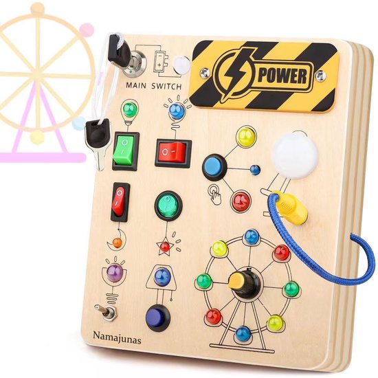 speelgoed Montessori - Jouets en bois - Jouets en bois - Tableau d'activités Montessori - Tableau d'activités Montessori pour les tout-petits de 1 à 4 ans - Jouet sensoriel avec Switch lumineux à LED - Jouets Éducatif de 1 à 4 ans