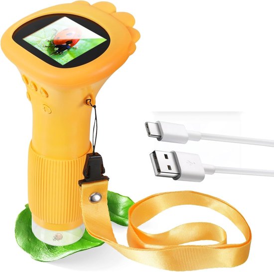 Microscope pour enfants - Microscope portable pour enfants - Écran 0 pouces - Microscope numérique - Affichage 200x - Port USB vers PC - Format de poche - Jaune