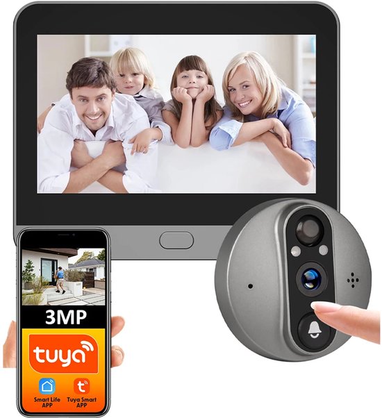 Sonnette vidéo avec écran de 4,3 pouces - Interphone visuel intérieur sans fil - Vision nocturne - Audio Dual - Geen application/wifi nécessaire