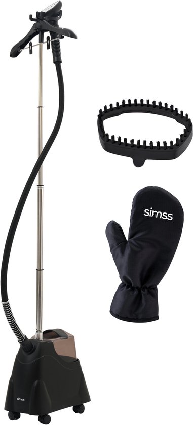 Simss® Prestige - Défroisseur vapeur vertical professionnel avec cintre - Réservoir d'eau de 2,5 L - 2000 W - Gant résistant à la chaleur inclus - Mat - Zwart