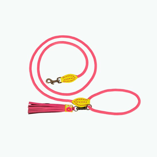 Laisse pour chien DWAM Dog with a Mission – Riem pour chien – Blauw – Jaune – Rose – Polyester/ Cuir – S – 155 x 1 cm – Lotus