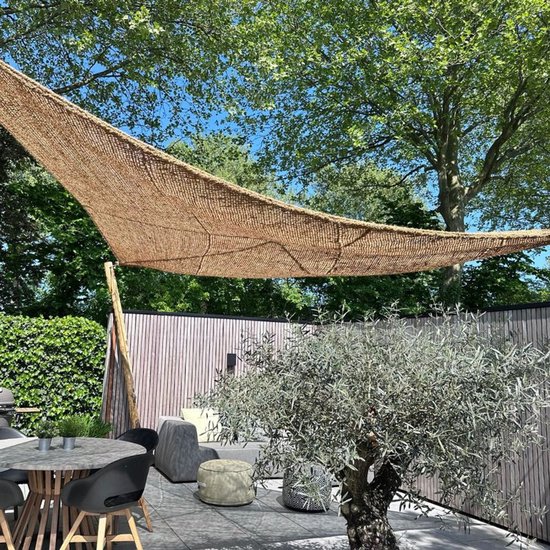 Vous accrochez une toile d'ombrage sur un arbre, un poteau ou un tel attribut. De cette façon, vous créez un toit qui protège non seulement du soleil, mais aussi des averses d'hiver ou de la pluie. Une toile d'ombrage en forme de triangle est donc idéale lorsque vous souhaitez vous asseoir dehors le temps d'une soirée.
