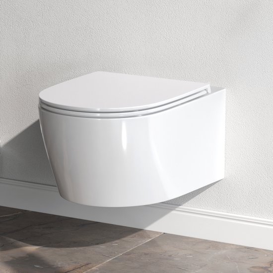 Toilettes suspendues Toledo avec abattant à fermeture ralentie et couvercle inclus - chasse d'eau profonde
