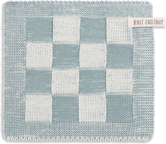 Knit Factory Manique en tricot - Maniques en 50 % coton et 50 % acrylique - Motif Blocs - Look traditionnel - 1 pièce - Écru/Vert printanier - 23 x 23 cm