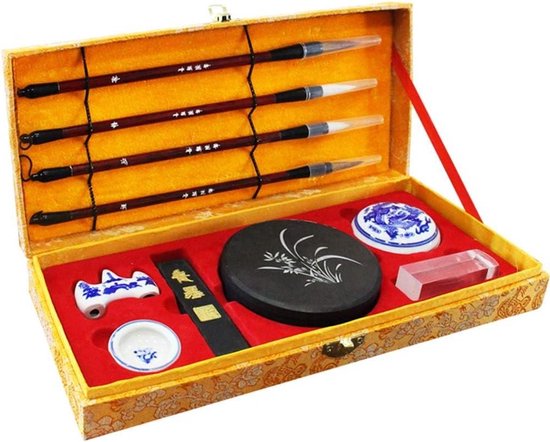 Kit de pinceaux de calligraphie chinoise, Set de 10, avec bâton d'encre et pierre à encre pour peinture Sumi-e, stylo en Bamboo SF-Z1
