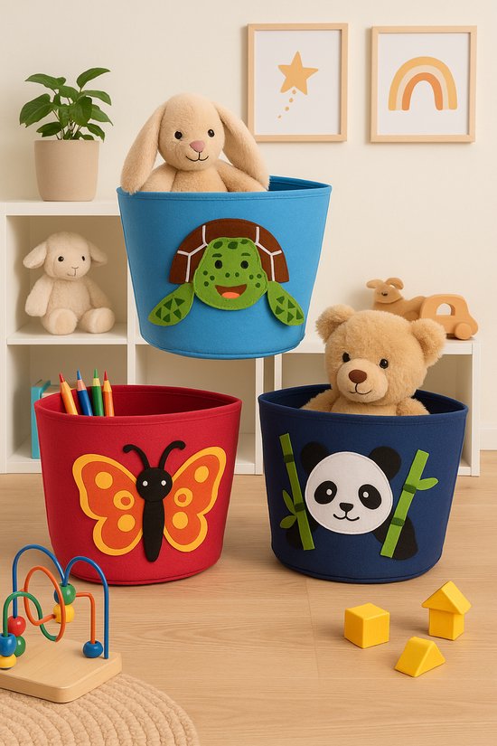 Panier à jouets enfant - Panier de rangement Chambre enfant Panier à linge - Enfant Sac de rangement speelgoed - Coffre à jouets décoration - Set de 3