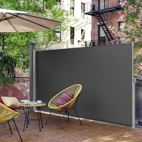 SONGMICS Auvent Latéral avec Coffre en Acier - Paravent - Antirouille - Parasol Extensible - Brise Vue...