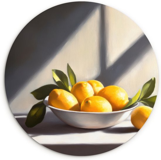 WallCircle® Cercle mural 90x90 cm - Cercle mural Citrons - Nature morte - Jaune - Décoration murale salon - Décoration murale chambre - Accessoires de décoration de chambre - Tableaux ronds