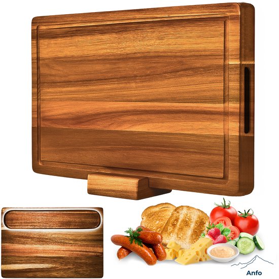 Anfo® Luxe Planche à Découper & Plateau d'Apéritif Réversible en Bois d'Acacia avec Support