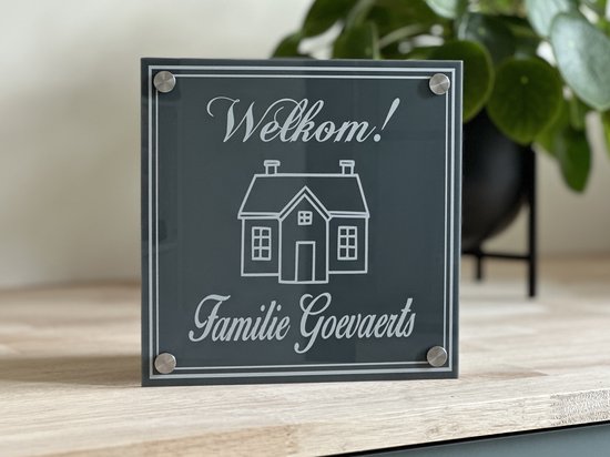 Plaque nominative porte d'entrée bienvenue maison gris
