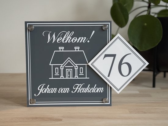 Plaque signalétique porte d'entrée jolie maison 20x20cm blanc