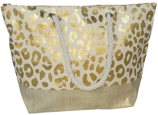 Sac de plage Gerimport Vivian - imprimé panthère - doré - anse en corde - 14 x 51 x 36 cm