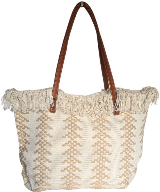 Sac de plage - Sac bandoulière - Imprimé Aztek - 100% coton - 48cmx34cmx15cm - Naturel