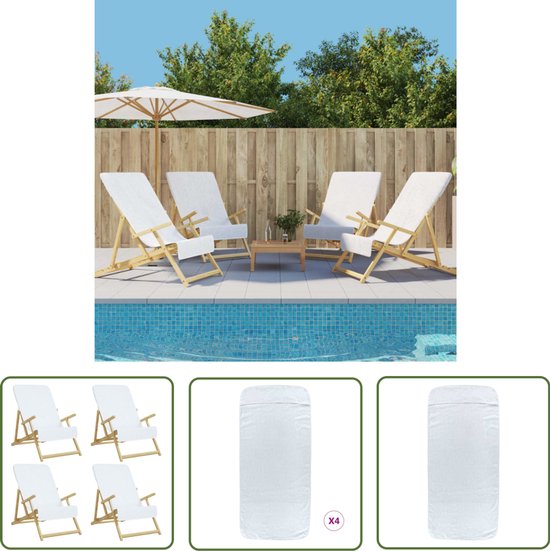 Serviettes de plage The Living Store 4 pièces 400 g/m² 60x135 cm tissu blanc - Serviette de plage - Serviette de bain - Antidérapante - Séchage Quick