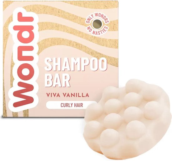 WONDR Shampooing solide - Viva Vanille - Cheveux bouclés - Hydratant - Sans sulfate - 55g