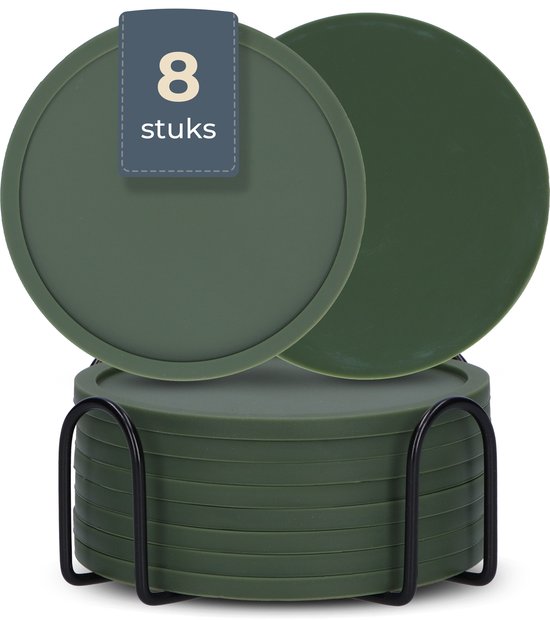 Sous-verres en Siliconen Castagnola – Sous-verres de Sous-verres Verres Design support – Set de 8 dessous de verre – Antidérapants – Vert