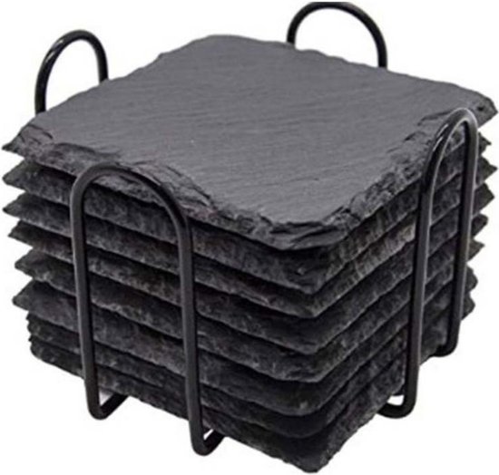 Sous-verres V&P - ardoise avec support - ensemble de 8 pièces - carré - pour verres - ustensiles de cuisine - boisson - sous-verres