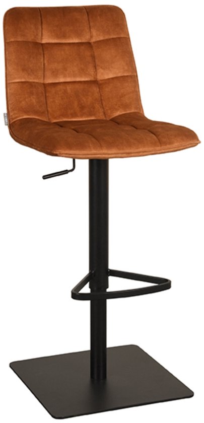 Usuals - Tabouret de bar Dora - Velours - Pieds en acier - Chaise de bar - Zwart