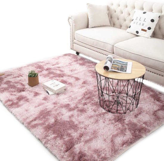 Tapis moelleux Happyment Soft - Moquette à poils longs - Rose 160x230cm - Lavable - Salon, chambre, chambre d'enfant