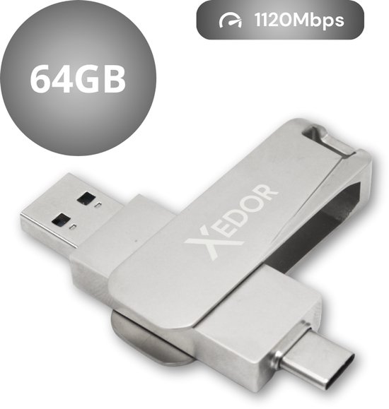 Xedor® Base - Clé USB - 64 GB - 1120 Mbps - USB C et A - iPhone et Android