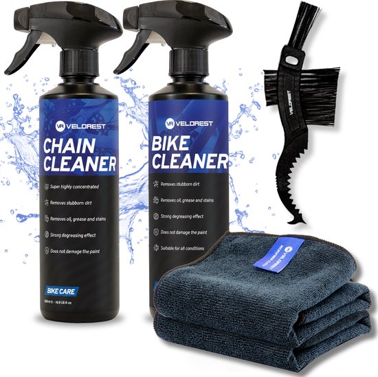 Velorest Bike Clean Bundle - Kit de nettoyage de vélo - Set de nettoyage de chaîne de vélo - Cleaner de chaîne - Dégraissant pour vélo - Cleaner pour vélo - Nettoyant pour chaîne de vélo - Set de nettoyage de vélo