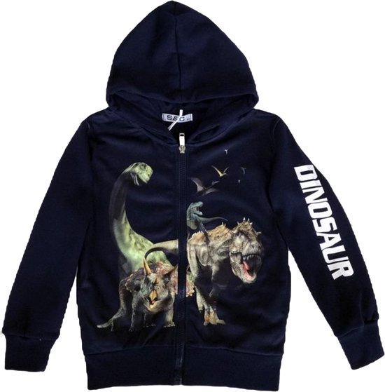 Gilet Kinder avec impression couleur Dino Dinosaurus | Capuche | Couleur bleu foncé | Taille 146/152 | Sweat | T-rex | De toute beauté !