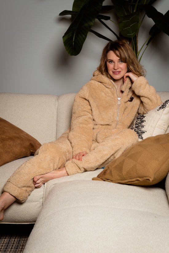 Combinaison polaire Knuffle pour femme® | Combinaison de maison chaude pour femme | Super doux et confortable | Qualité premium | Beige taille XXS | Produit de manière durable et neutre en CO₂ au Portugal