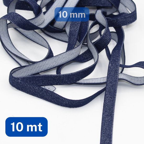 10 mètres ÉLASTIQUE JEANS, largeur 10MM, en tissu Jeans , couleur BLEU FONCÉ