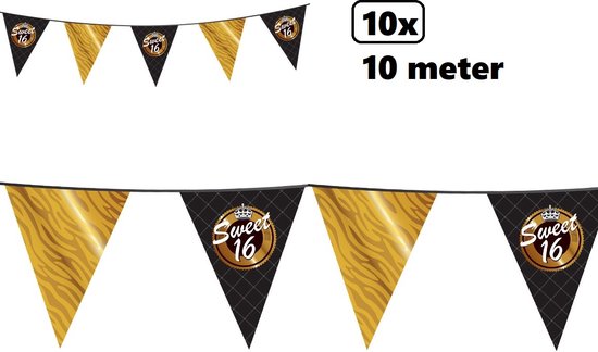 10x Ligne de drapeau de luxe Sweet Sixteen 10 mètres.