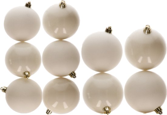 10x morceaux de boules de Noël en plastique blanc laine 8 et 10 cm. Set de boules incassables en mix de 6 boules de 8 cm et 4 boules de 10 cm. Nous vous conseillons de commander des crochets pour boules de Noël (non inclus).