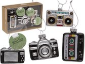 - 1x 6x morceaux de boules de Noël en plastique laine blanc 8 cm brillant/mat