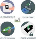 Les matériaux du sac à poussière sont extrêmement résistants à la déchirure et sont maintenus légèrement parallèles. En conséquence, unexcellent rapport entre filtration et puissance d'aspiration atteint.