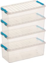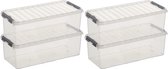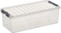 10x Sunware Q-Line boîte de rangement / boîte de rangement 9,5 litres 48,5 x 19 x 14,7 cm plastique - Boîte de rangement oblongue / étroite - Boîte de rangement plastique transparent / argent