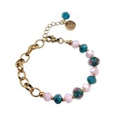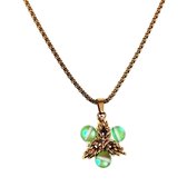 Le deuxième pendentif est composé de deux perles en pierre naturelle d'oeil de chat, également de couleur jaune, mais dans ce cas séparées par un séparateur en forme de fleur en acier inoxydable plaqué or. Ce séparateur ajoute une touche de style et de sophistication au design tout en gardant les perles en place.
