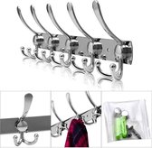 1x Patères de Luxe / patères argent avec 3x double crochet étroit - métal de haute qualité - 16,5 x 39 cm - porte-manteaux muraux / crochets de penderie / porte-manteaux de porte