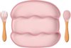 2 Pièces - Assiettes Bébé avec Ventouse avec Cuillère - Beige Taupe - Kom en Siliconen Incassable