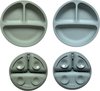 Assiette de belle taille pour bébé qui s'alimente seul (9 mois et plus). Couleurs calmes. Compartiments profonds pratiques qui facilitent le ramassage. Ne sont pas si antidérapants qu'ils restent fixes. Lave-vaisselle.