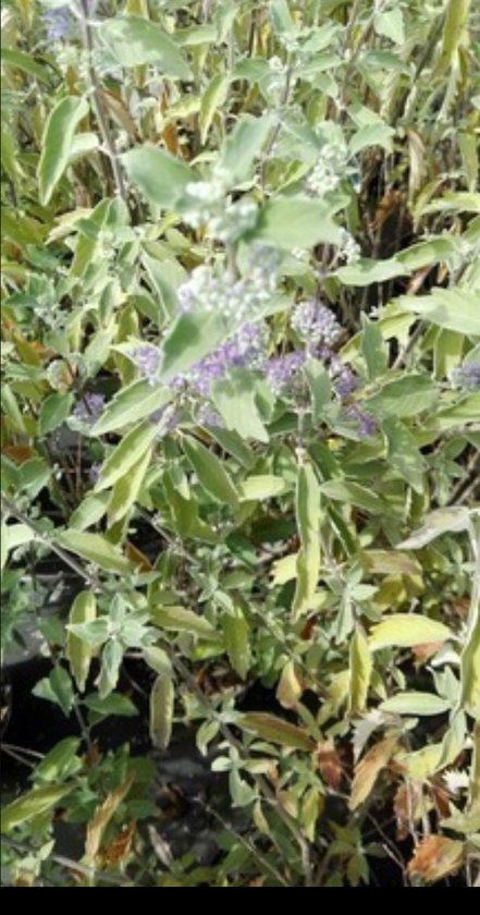 Caryopteris clandonensis 'Kew Blue', petit arbuste caduc atteignant 1 m de haut et de large. De port dressé et très richement florifère avec des panaches de fleurs bleu foncé au parfum délicat. Les feuilles gris-vert, en forme de lance, sont également aromatiques et sentent la menthe lorsqu'elles sont touchées ou frottées. La taille et la longue période de floraison d'août à octobre font de ce caryoptéris un (semi)arbuste spécial pour la bordure mixte ou le petit jardin. Ils sont également résistants à la sécheresse et adaptés aux environnements urbains.