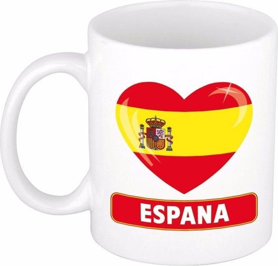 2x pièces tasse / tasse coeur d'Espagne. Ce mug avec le drapeau espagnol en forme de cœur a une contenance d'environ 300 ml. La tasse va au micro-ondes et au lave-vaisselle. Matière: céramique. Hauteur : 9,5 cm. Diamètre : 8,2 cm.