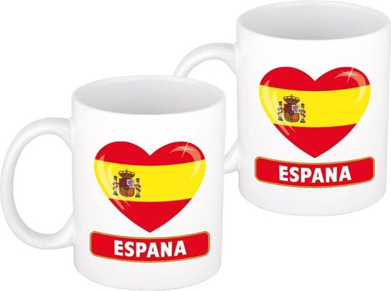 2 x mug/tasse cœur d'Espagne 300 ml - Articles de fête drapeaux de Landen - Supporters
