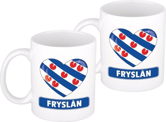 2 x tasse / tasse de drapeau de la Frise en forme de coeur 300 ml - Articles de fête pour les partisans des pays à thème frison